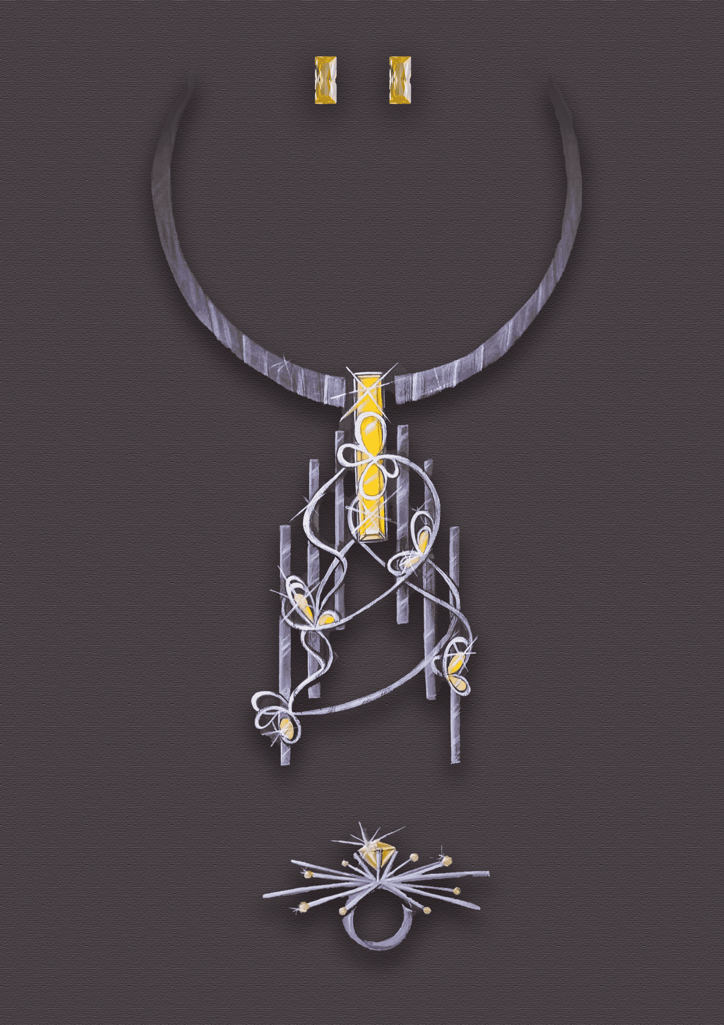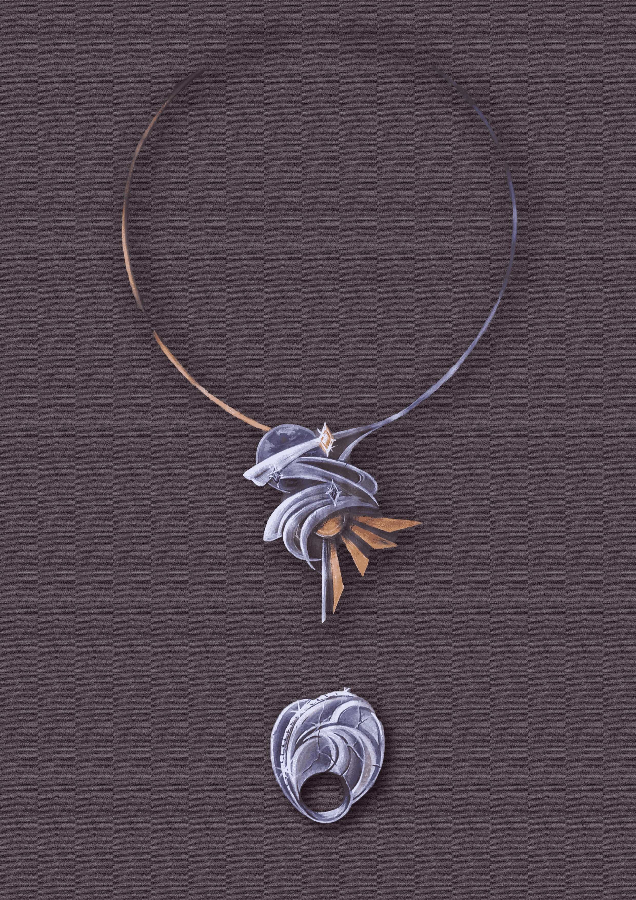 Ювелирные ансамбли, вдохновленные поэзией японских классиков Техника: ювелирная гуашь